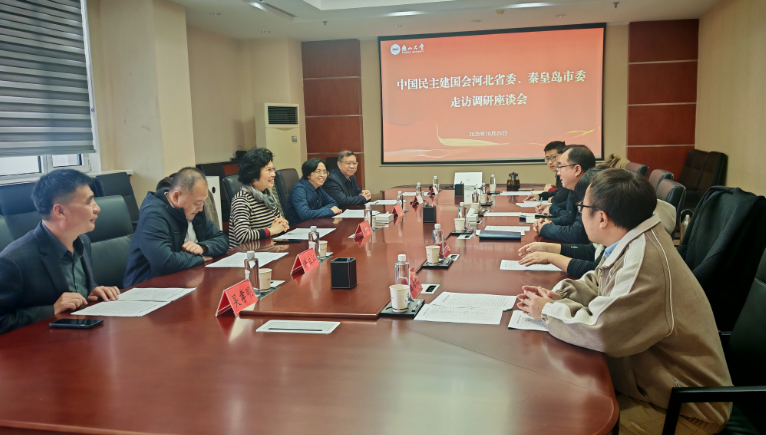 10月25日,民建河北省委副主委、二级巡视员武云秀,民建河北省委社会服务部部长、一级调研员洪立江一行莅临燕山大学调研基层组织建设,并与民建燕山大学支部会员代表座谈交流。民建河北省委副主委、民建秦皇岛市委主委、市政协副主席孙立军,民建秦皇岛市委副主委、市林业局二级调研员杨金龙等领导随同调研。燕山大学党委统战部部长韩昱卓应邀出席座谈会。
